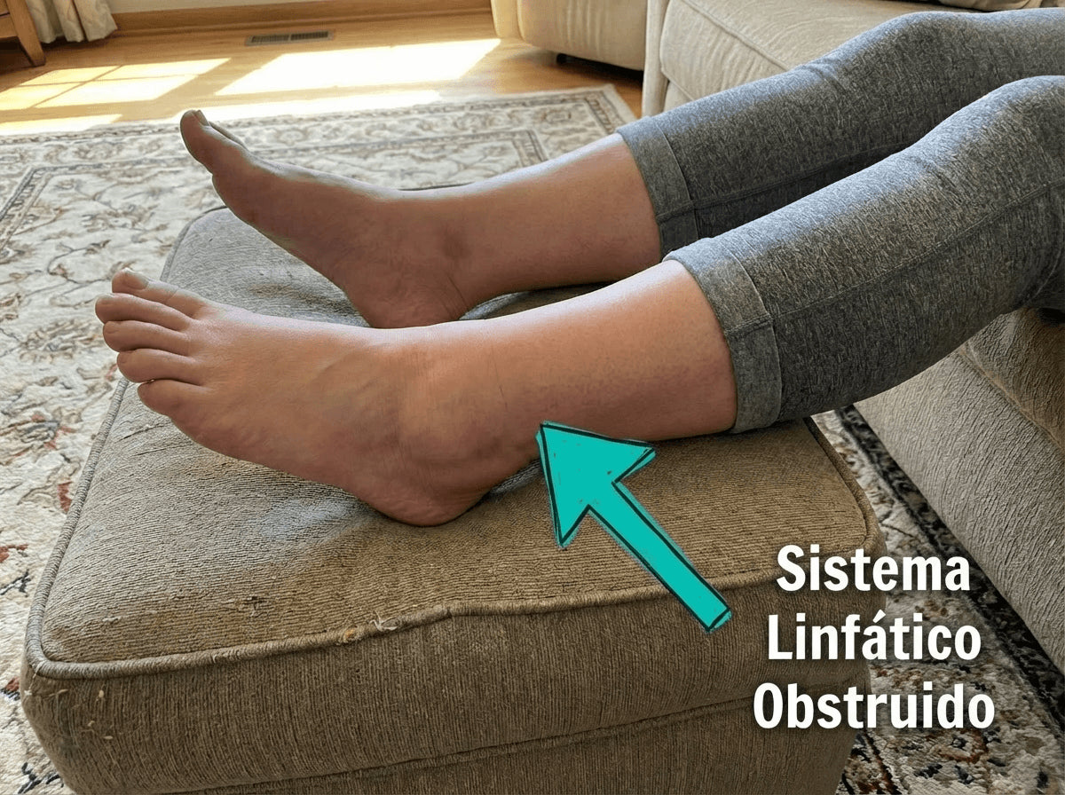En lugar de procesarlos y eliminarlos, los desechos se acumulan en los tejidos — especialmente en piernas, tobillos y abdomen.